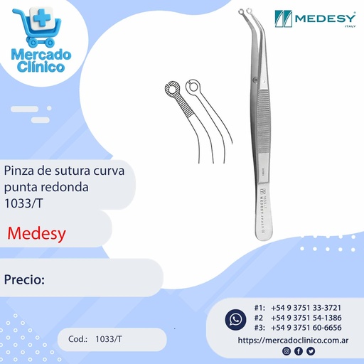 Pinza de sutura curva punta redonda 1033/T - Medesy